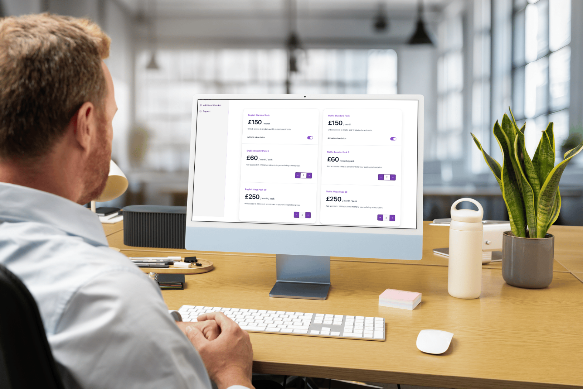 Fundamentally, we charge per student, but to keep things simple, we group students into 'packs'. The more students you have, the cheaper it gets per student. The Standard Pack is our starting point, which gives you access for 10 students in one subject (maths or English) for a month. Once you have more than 10 students, you will be asked to add a Booster Pack, where you can choose to add another 5 or 10 students (10 students is cheaper per student).